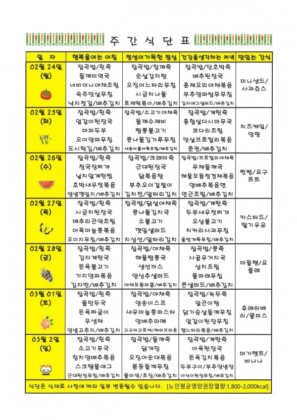02월24일 ~ 03월02일 주간식단표