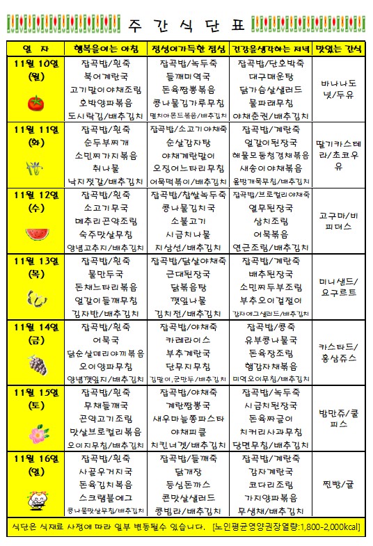 11월10일 ~ 11월16일 주간식단표