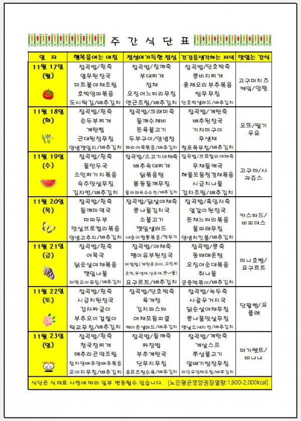 11월17일 ~ 11월23일 주간식단표