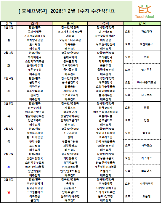 2월2일 ~ 2월8일 주간식단표페이지 정보![]() 본문2월2일 ~ 2월8일 주간식단표